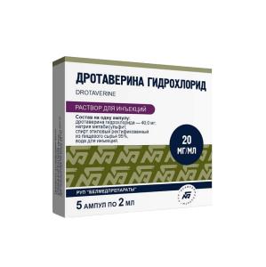 ДРОТАВЕРИНА ГИДРОХЛОРИД (р-р д/ин. 20 мг/мл амп. 2 мл №5х1)