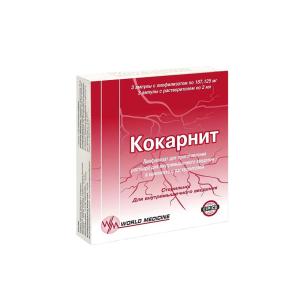 КОКАРНИТ (лиофилизированный порошок д/приг. р-ра д/инъекций в амп. в комплекте с растворителем (0,5% р-р лидокаина гидрохлорида в амп. 2мл) №3)
