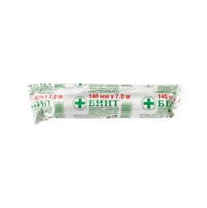 Бинт медицинский неэластичный (фикс. с неосып. краями вязаный из пряжи хлопчатобумажной (100%) н/с 140мм*7м )