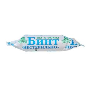 Бинт медицинский неэластичный (фикс. с неосып. краями вязаный из пряжи хлопчатобумажной (100%) н/с 50мм х 5м )