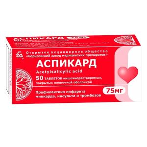 АСПИКАРД (таб. кишечнорастворимые п/п об. 75 мг №10х5)