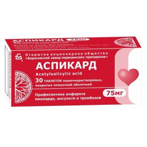 АСПИКАРД (таб. кишечнорастворимые п/п об. 75 мг №10х3)
