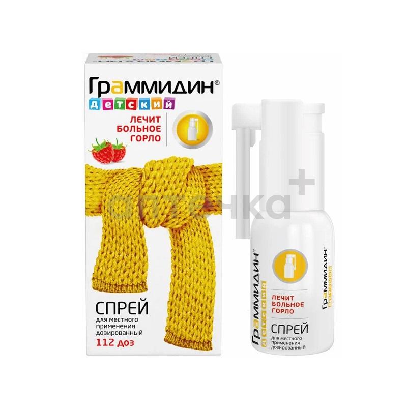 ГРАММИДИН ДЕТСКИЙ (спрей д/местного применения дозированный (0,03мг+0,1мг)/доза фл. 112 доз №1)