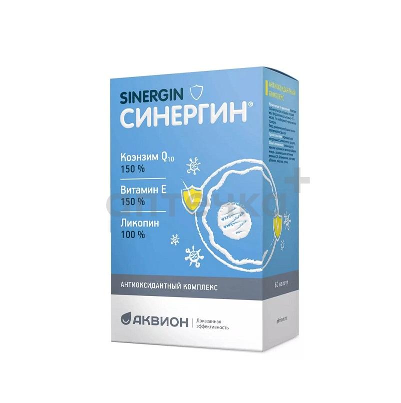 Синергин - антиоксидантый комплекс для мужчин и женщин, рекомендуется в качестве биологически активной добавки к пище – дополнительного источника: витамина С, витамина Е, бета-каротина, источника: убихинона, ликопина, рутина. Содержит уникальную комбинацию 6 мощных природных антиоксидантов, оказывающих синергичное действие липофильных и водорастворимых антиоксидантов.
