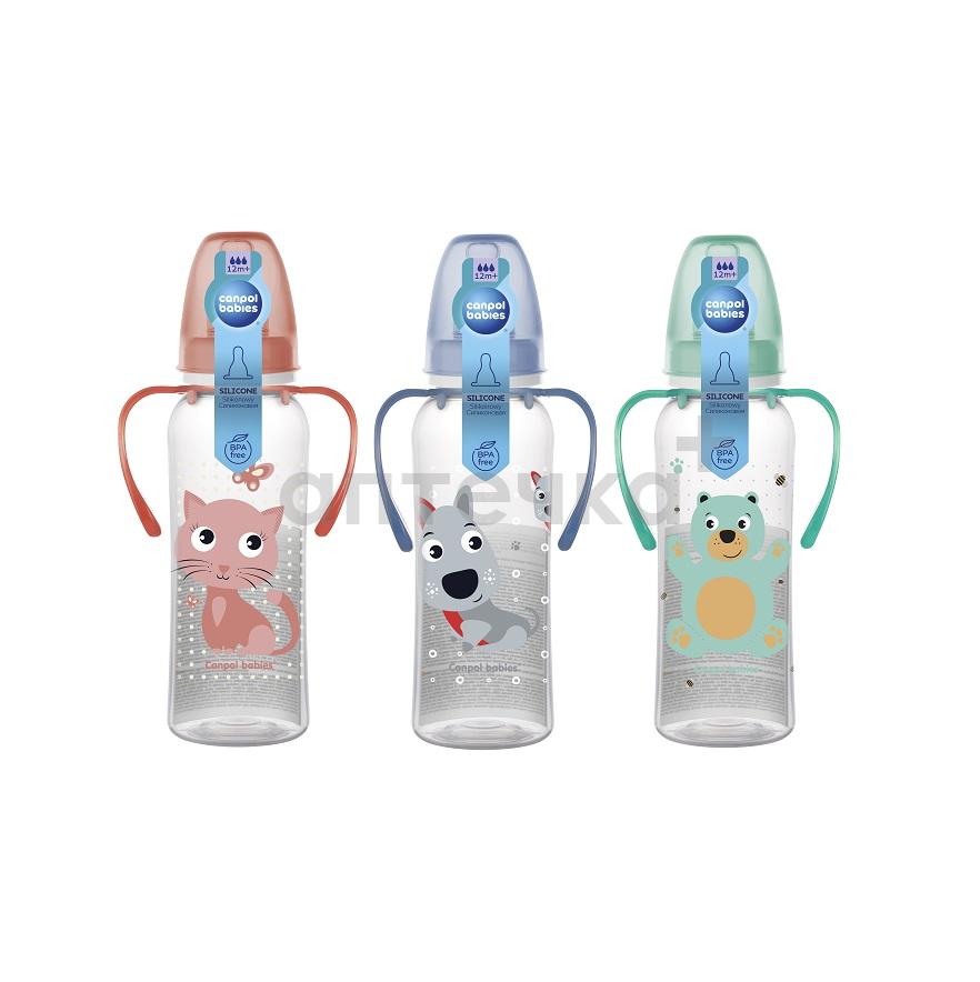 Бутылочка Canpol babies с узким горлышком CUTE ANIMALS объемом 250 мл с ручкой оснащена круглой силиконовой соской, подходит для детей от 12 месяцев. Бутылка изготовлена из безопасного материала – полипропилена. Этот материал делает его легким и в то же время прозрачным – благодаря этому хорошо видимая шкала позволяет точно измерять количество вводимой пищи. Без бисфенола А.