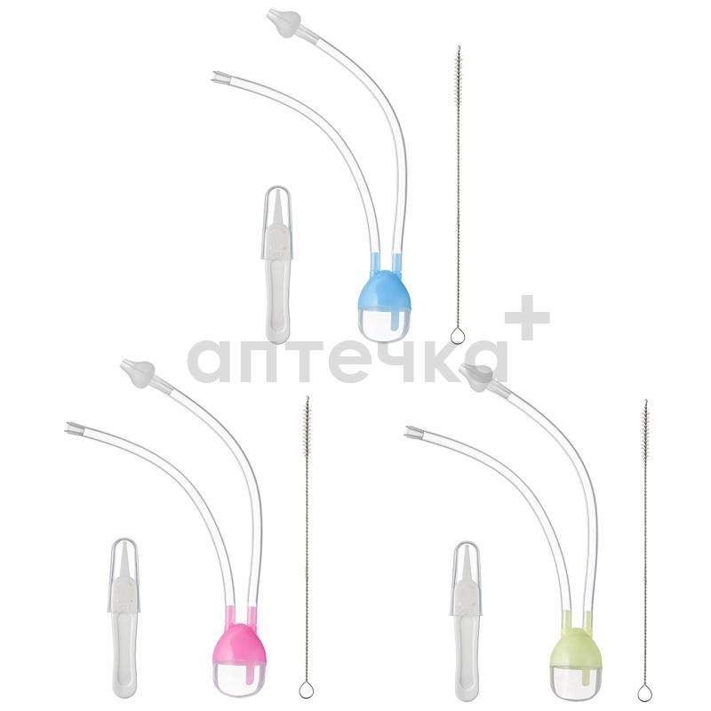 В комплекте пинцет для соплей и щеточка для очищения аспиратора. Подходит для детей с рождения.