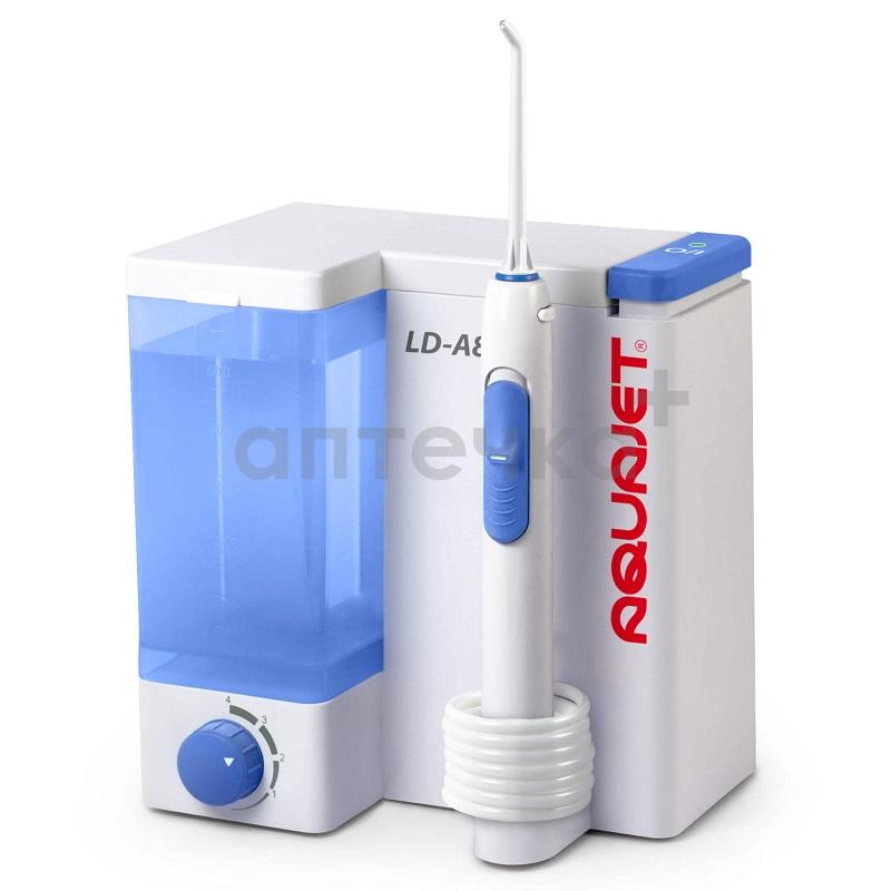 Ирригатор Aquajet LD-A8 — это стационарное устройство для ухода за полостью рта, которое предназначено для массажа и орошения слизистой полости рта, а также помогает в профилактике и лечении пародонтальных заболеваний, таких как гингивит и пародонтит. При этом ирригатор помогает очищать недоступные для зубной щётки и нити межзубные промежутки, ухаживать и значительно продлевать срок службы зубных аппаратов, включая коронки, имплантаты, зубные протезы, аппараты для исправления прикуса. Прибор обеспечивает доступ мощной пульсирующей струи воды или специального раствора к любым областям полости рта. Массирует десны и всю полость рта, улучшает кровообращение и предотвращает кровоточивость десен. Обеспечивает максимальный уход за зубными протезами и коронками, препятствует развитию болезнетворной микрофлоры и воспалительных процессов в местах соприкасания зубных протезов и коронок со слизистой полости рта, что не достигается другими обычными средствами. Предотвращает образование зубного камня, гингивит и многие пародонтальные болезни.
